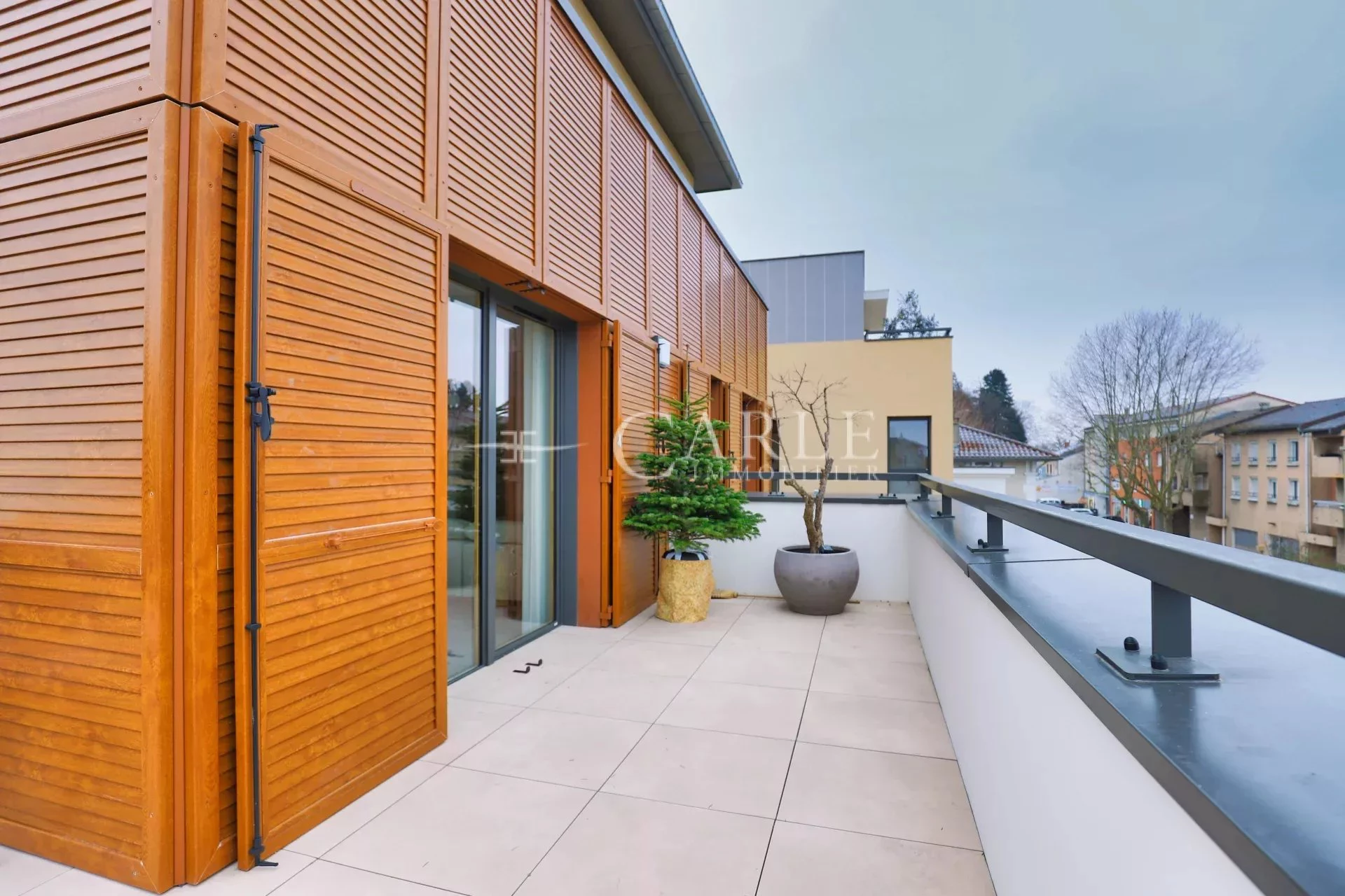 Pensé par l'architecte pour la tranquillité de ses occupants, vous accéderez à cet appartement par une passerelle le rendant indépendant des autres et sans mur mitoyen avec les autres logements de l'étage.